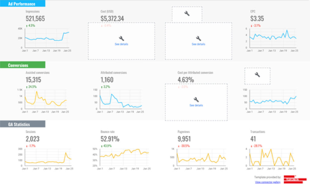 Looker Studio connectors link your ad platforms like Facebook Ads, Google Ads, and Google Analytics to Looker Studio. They let you combine data from multiple sources into one dashboard for easy analysis and reporting.